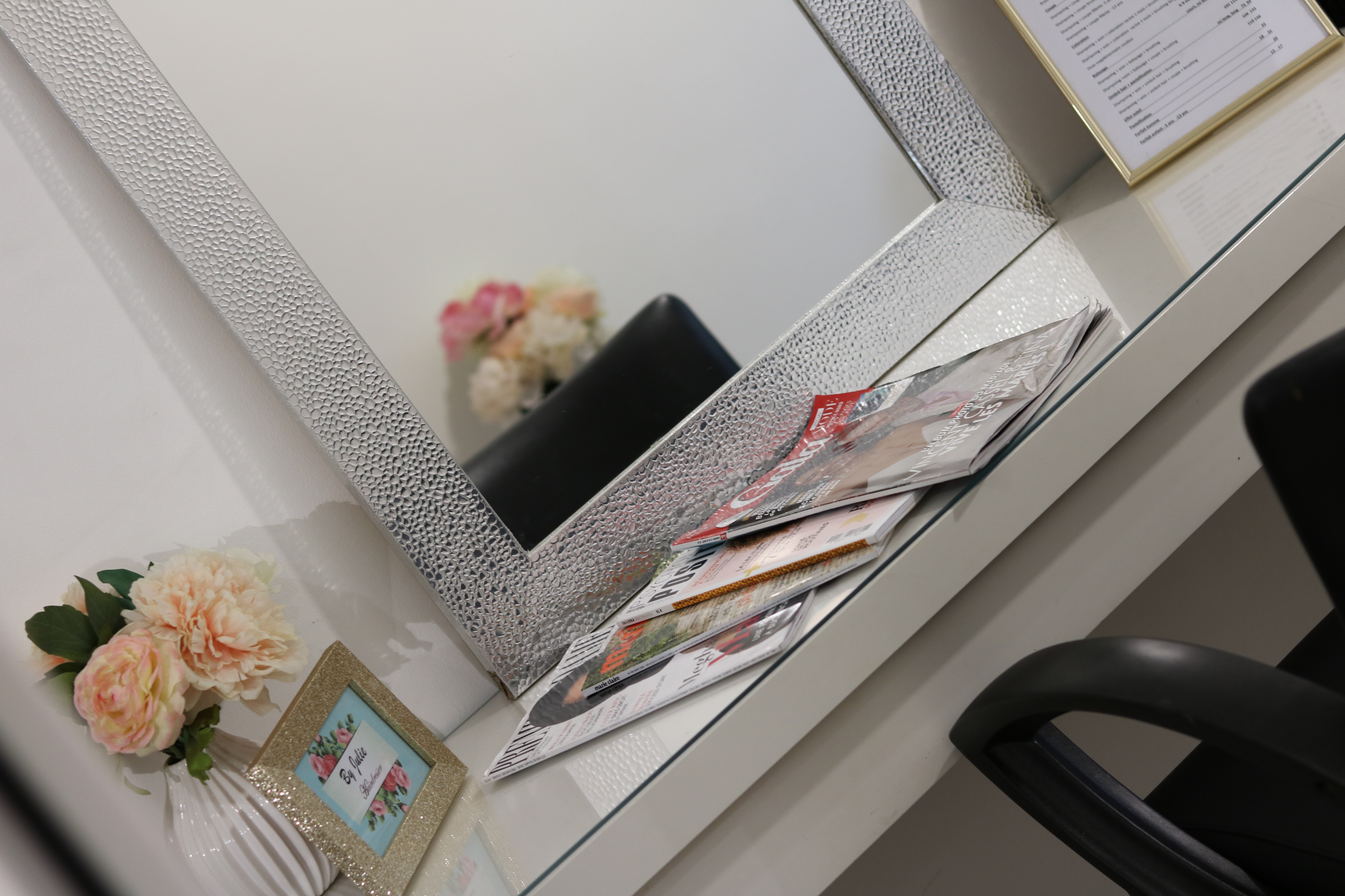 Depuis peu, KAZ A NOU vous propose également dans ses locaux un espace Salon de Coiffure nouvellement installé. Avec sa décoration épurée, ses teintes pâles et son esprit cocooning, vous vous sentirez tout de suite apaisés et prêts à vous faire chouchouter. Vous y serez accueillis par Julie (de “By Julie Hairdresser” ) et pourrez vous faire coiffer en attendant votre enfant. Ou faire coiffer vos enfants.