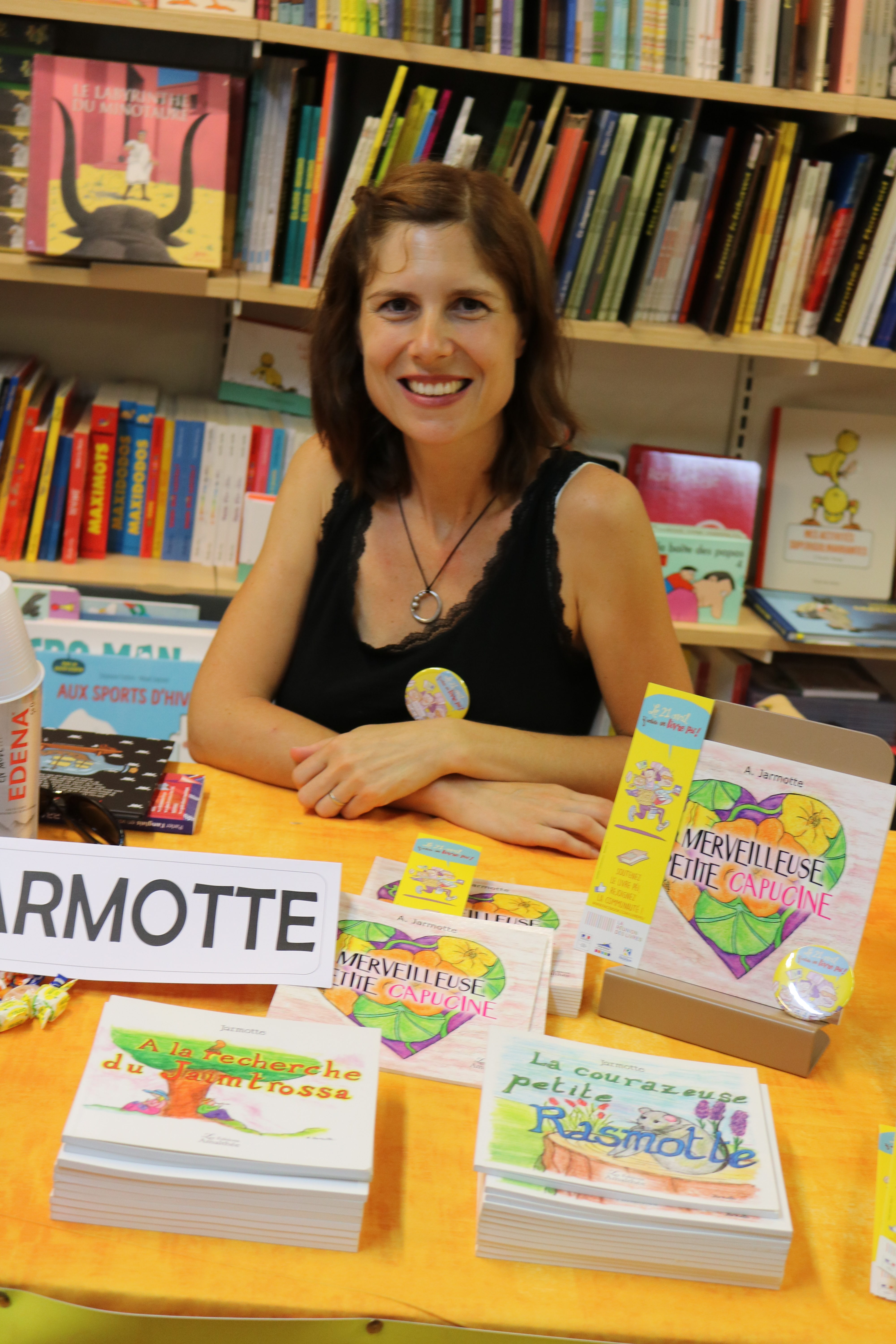 J’ai pu revoir Joëlle Ecormier, qui présentait ses livres, notamment « Les cadeaux impossibles », très apprécié des enfants. Il y avait également A. Jarmotte, pour « Merveilleuse petite Capucine » sur le thème du jardin et Mady Wolf avec « La clé enchantée », qui a égayé les lieux de sa jolie voix, accompagnée à la guitare.