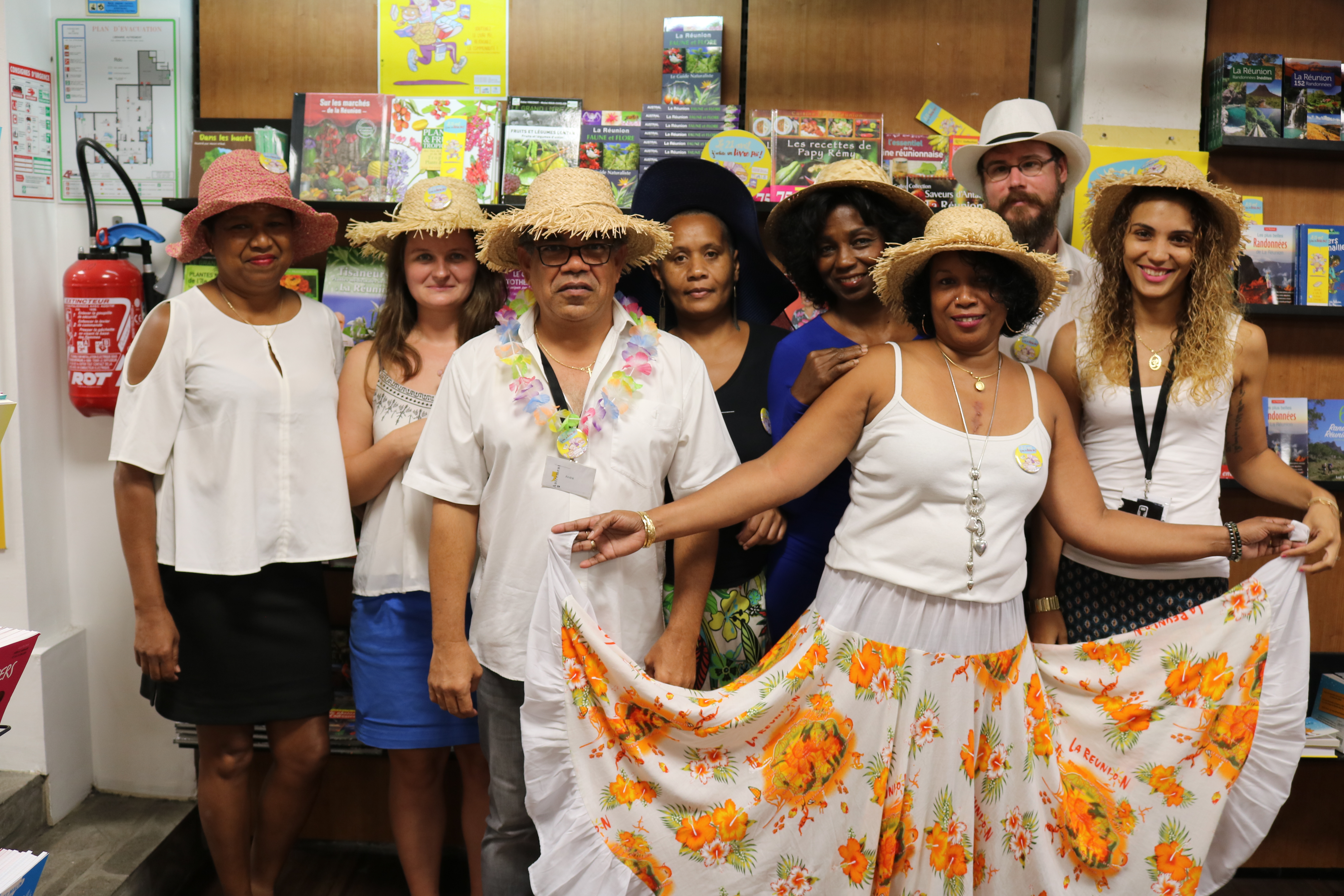 Étape suivante, la Librairie Autrement, où toute l’équipe était parée de chapeaux, badges et autres accessoires de circonstance.